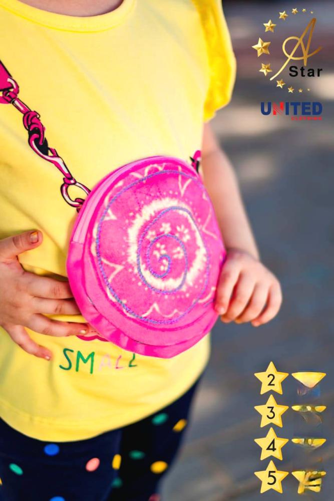 * شنطة عملية: تُكمل إطلالة الترنج شنطة عملية مُلحقة بالتيشيرت، تُساعد طفلتكِ على حمل أغراضها الصغيرة بكل أناقة.