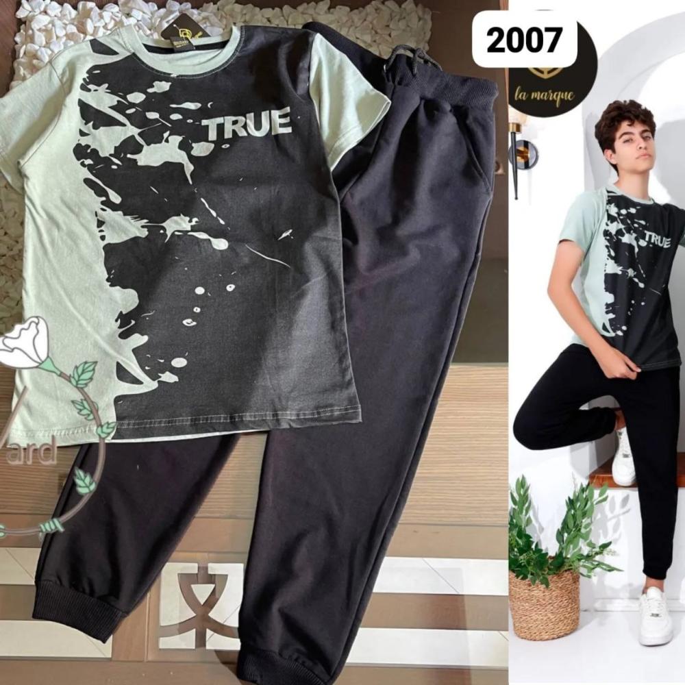 ترنج محير ولادي صيفي - طقم قطن 100% وبنطلون سمر ميلتون بطبعة فنية عصرية